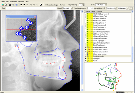 Unlike “classical” cephalometric evaluation programs CADIAS links x-rays with other input data: anterior guidance, dynamic condylography (CADIAX), CPM, tooth arch). Thus, CADIAS® an interdisciplinary tool for diagnostics and planning.