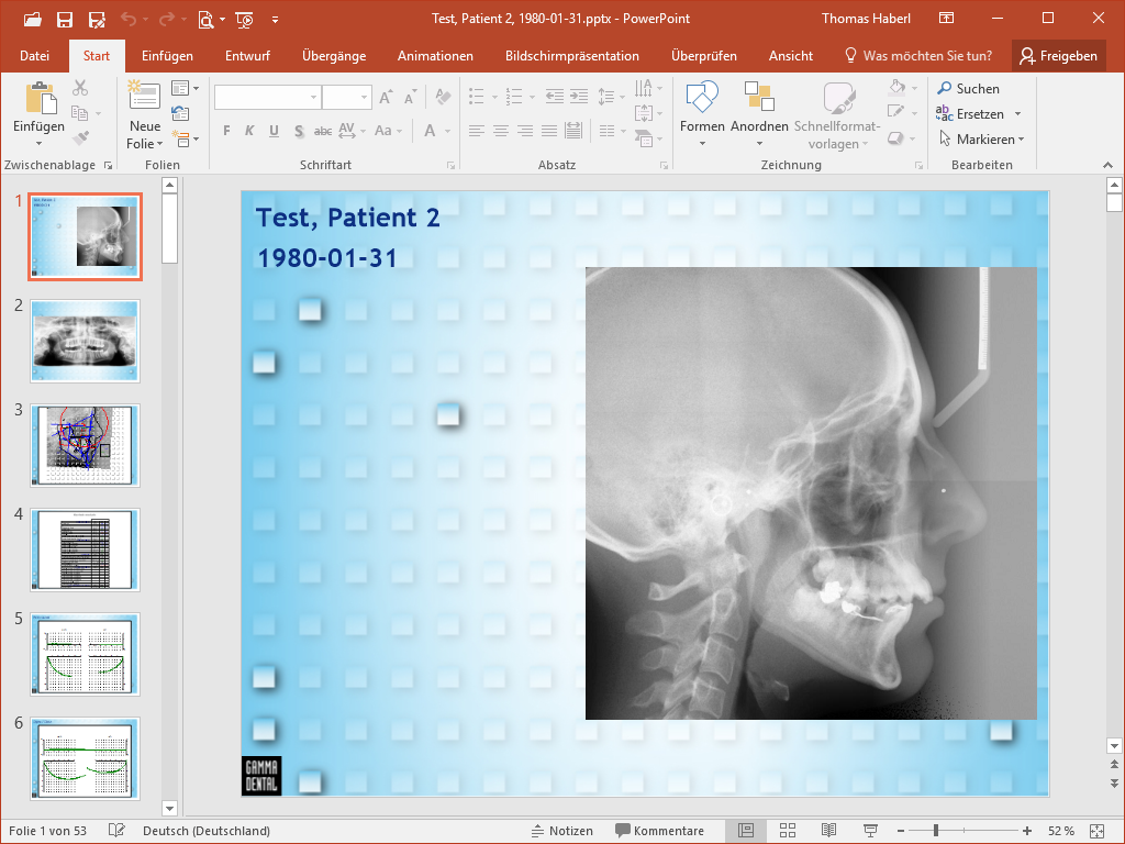 Indeed, the software also promotes the camera-ready case presentation in front of patients and conference audiences and can further be used for illustration purposes in scientific publications or internet presences. For this purpose, the application offers a fully integrated presentation feature, which also supports advanced functionality such as showing/hiding individual cells, defining automatic presentation timings as well as transitions between slides.