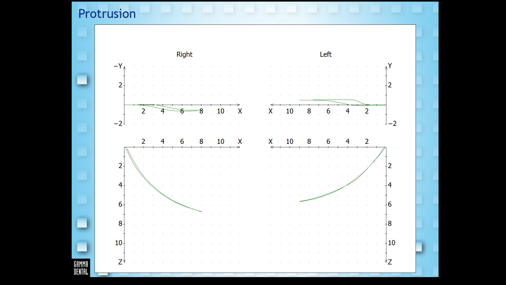 Calculations for sagittal protrusion inserts are made with the protrusion track on hand, by evaluation of the X/Z diagram.