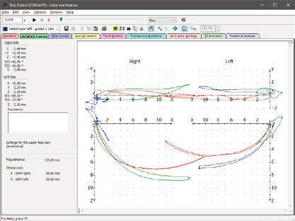 The program includes a variety of display options, as well as conversions for setting the articulator and wax-up technique. In addition to detailed diagnostic analyses of mandibular movement, it allows for expanded articulator calculations, including the setting of individual anterior guidance units.